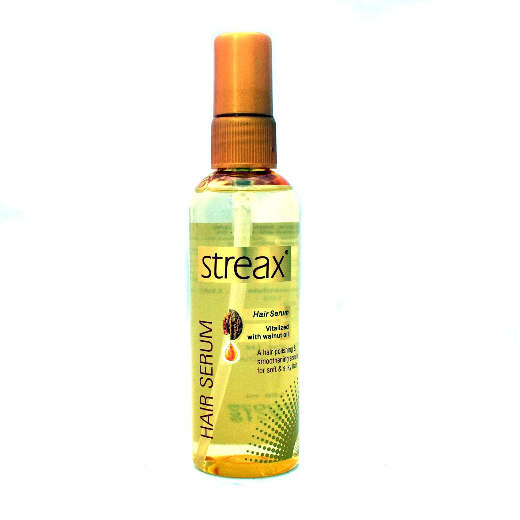 Streax pro hair serum is a rich treatment of hair serum with vitamin e for frizz free, satin smooth hair.it claims to instantly seal smoothness into hair strands. Streax hair serum will be your best partner to have the confidence you require to shine. Streax pro hair serum is the ultimate frizz resistant formula that instantly seals silky smoothness into hair cuticles. Enriched with walnut oil walnut oil helps to keep your strands stronger and smoother and the rich moisture of the serum ensures that your hair receives healthy protection from damage all through the. It delivers a silky finish, luminous shine, and touchable softness without leaving hair greasy.